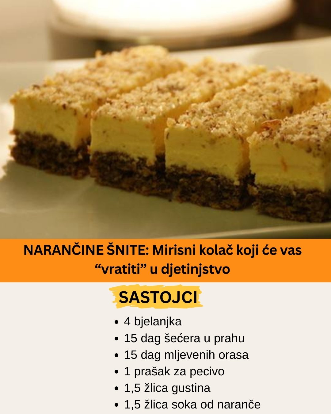 Potrebni sastojci Za testo: 500 g brašna 1 prašak za pecivo 250 ml piva 200 ml ulja 1 vanilin šećer prstohvat soli Za punjenje: 200–250 g domaćeg pekmeza od šljiva (ili po želji – kajsija, višanja…) Za sirup: 300 ml vode 150 g šećera 1 kesica vanilin šećera Za posip: 100 g mlevenih oraha 100 … Read more