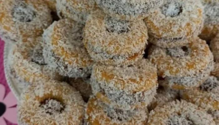 Pripremiti oko 800g čajnih kolutića, 200ml mlakog mlijeka i oko 100g kokosovog brašna. Čajne kolutiće kratko umakati u mlijeko, filovati ih kremom i uvaljati u kokosovo brašno.