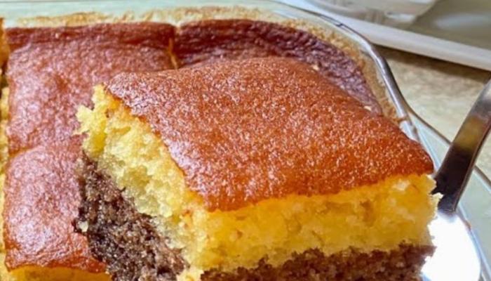 Dok se prva kora peče, počnite sa pripremom druge kore. Druga kora ide po sličnom postupku pripreme, sa izuzetkom izostavljanja oraha i čokolade iz tijesta. Nakon što je kolač odležao u rerni 10 minuta, izvadite ga i ravnomerno rasporedite žutu koru po vrhu. Smanjite temperaturu na 175 stepeni i nastavite sa pečenjem još 25-30 minuta. U međuvremenu počnite da kuvate sirup. Ostavite tortu sa strane nakon što je izvadite iz rerne. Nastavite tako što ćete topli kolač preliti šerbetom koji se kuha na pari.