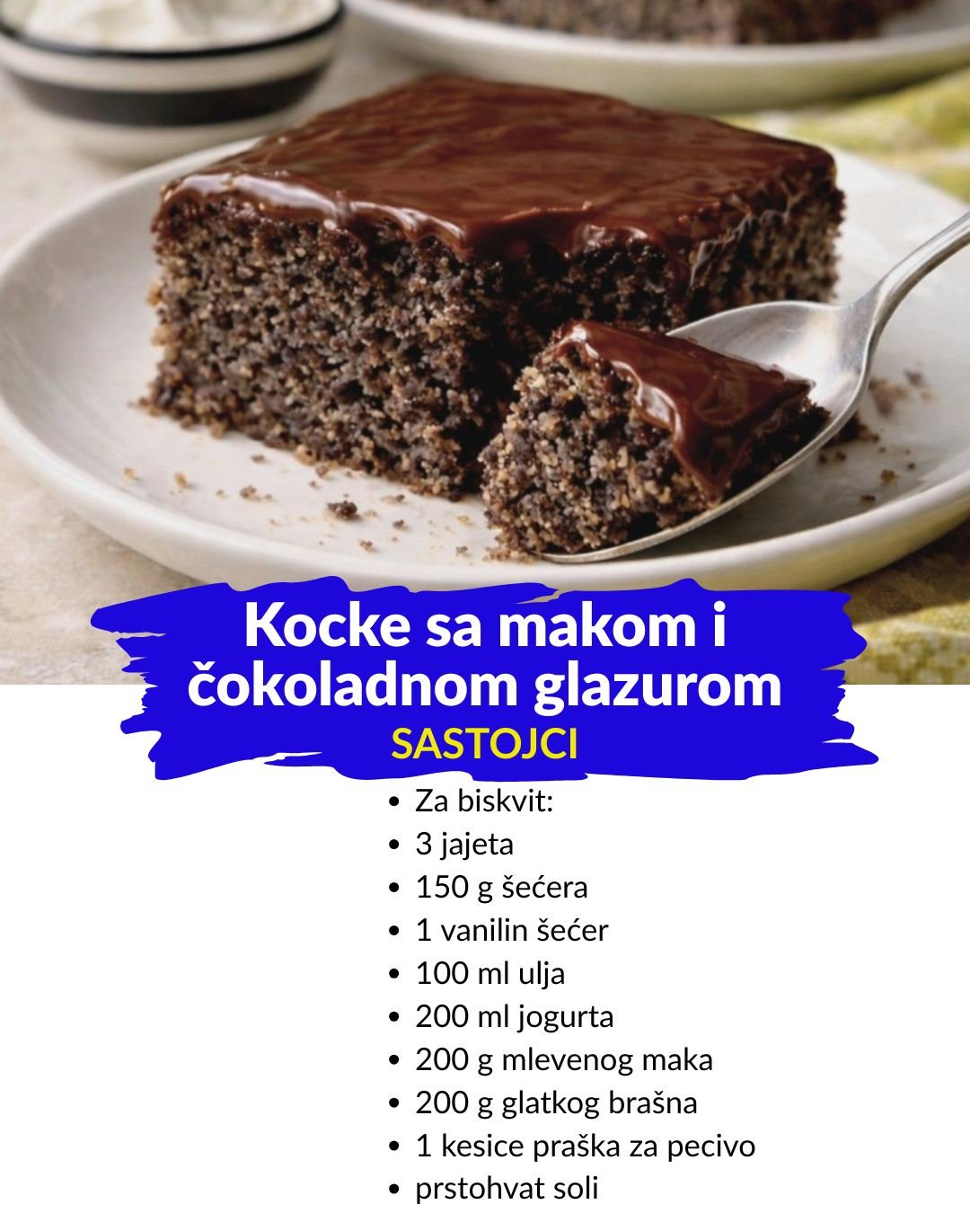Sočan kolač sa makom i bogatom čokoladnom glazurom idealan je za sve ljubitelje jednostavnih, ali punih ukusa. Brzo se priprema, lepo se seče na kocke i savršen je uz šolju kafe ili čaja.