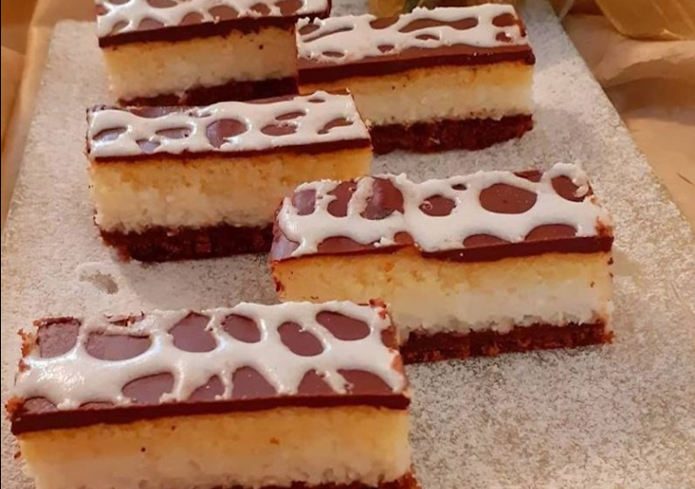 Dva sloja biskvita sa laganom kremom od kokosa, pa onda još čokoladna glazura… Dobit ćete kolač koji je okusom sličan čupavcima. Kokos kocke jednostavno se pripremaju, ne zahtijevaju mnogo vremena, a količinski ih ispadne puno.