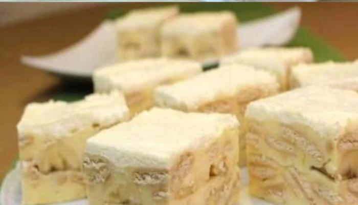 Pomiješajte šećer i prašak za puding sa malo mlijeka. Preostalo mlijeko zakuhati, pa dodati smjesu za puding. Neprekidno mešajte dok kuvate nekoliko minuta dok puding ne postane gust. Sklonite sa vatre i umiješajte puter koji treba isjeći na sitne komade, dok je smjesa još vruća. Energično miješajte dok se puter potpuno ne otopi, a krema glatka. Zatim dodajte kiselu pavlaku i dobro promiješajte da se krema ujednači. Na kraju rukom izlomite kekse na male komadiće i kuhačom sjedinite sve sastojke dok se dobro ne sjedine.