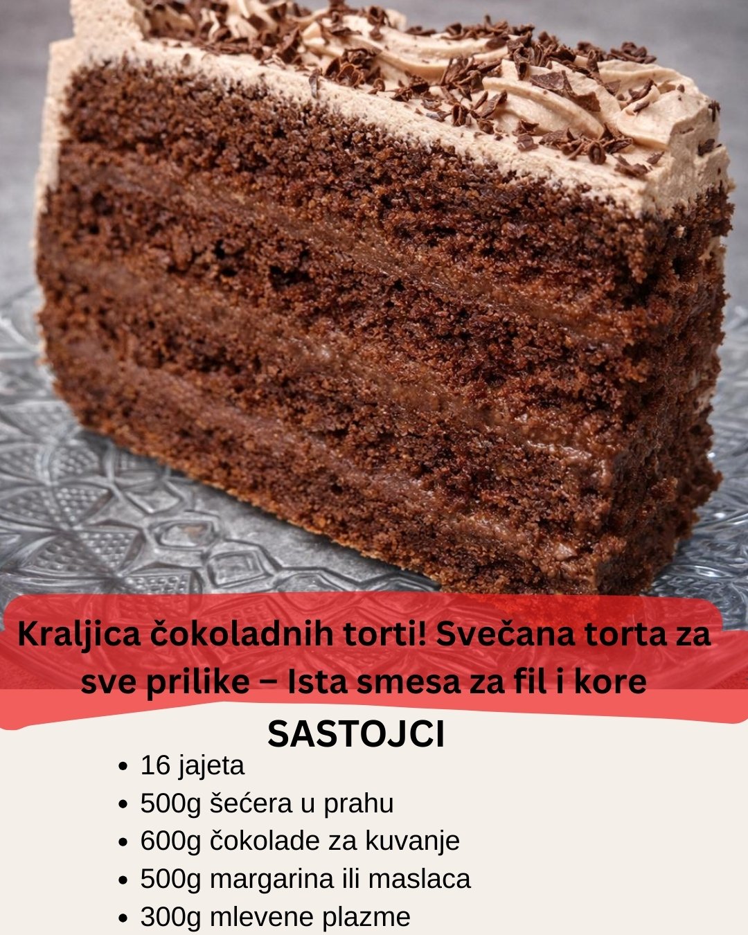 KRALJICA ČOKOLADNIH TORTI Svečana torta za sve prilike – ista smesa za fil i kore