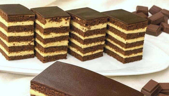Belanca izlupajte pa dodajte šećer i sve fino još izmiksajte u gustu glatku smesu. Pomešajte ostale sastojke sa brašnom pa postepeno dodajte u belanca. Smesu podelite na 5 delova i rasporedite na pripremljene isečene papire. Pecite 10 min na 180°C. Svaku koru poprskajte čokoladnim mlekom.