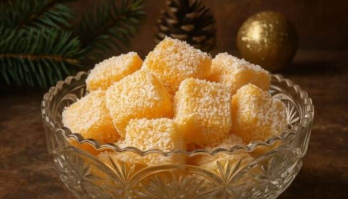Kada se ohladi i očvrsne, iseckajte je na jednake kockice i uvaljajte u kokosove mrvice. Dobićete predivne, osvežavajuće lokume koji kombinuju slatkoću, citrusnu svežinu i mekanu strukturu.