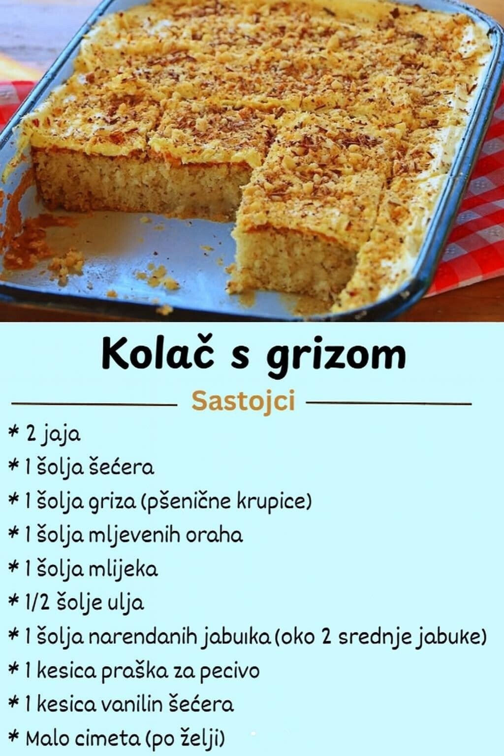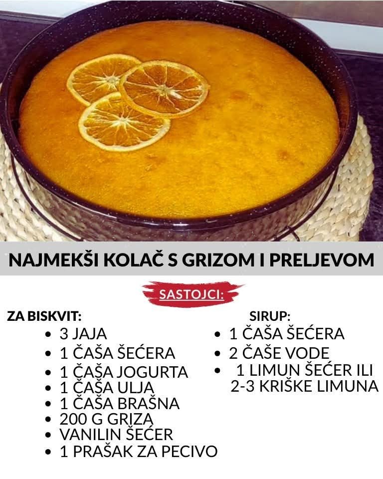 Ovaj kolač s grizom spada u one provjerene domaće recepte koji uvijek uspiju. Izuzetno je mekan, sočan i lagan, a zahvaljujući slatkom limunastom sirupu ostaje vlažan i svjež danima. Idealan je za porodična okupljanja, nedeljne kolače ili uz šolju kafe i čaja. SASTOJCI Za biskvit: 3 jaja 1 čaša šećera 1 čaša jogurta 1 čaša … Read more