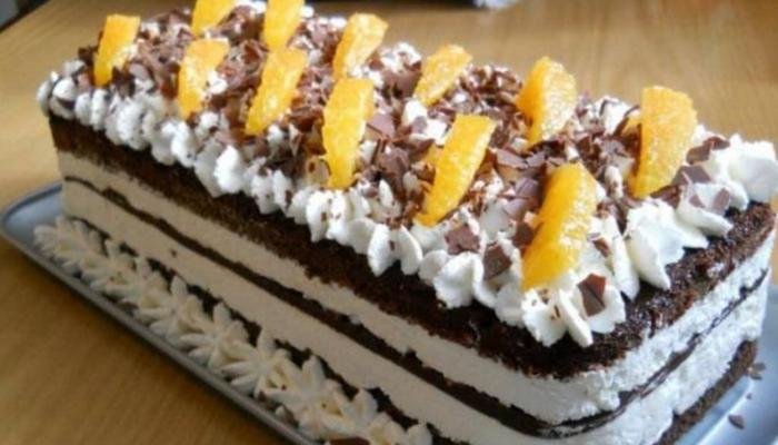 Sastojci: Biskvit 4 jaja 10 dkg šećera 20 dkg margarina 10 dkg čokolade za kuhanje 4 žlice brašna 1 prašak za pecivo Krema 0,5 l slatkog vrhnja 20 dkg čokolade za kuhanje 1 žlica šećera Priprema: Žutanjke i šećer umutiti, dodati istopljeni margarin i čokoladu, brašno pomiješano sa praškom za pecivo i na kraju snijeg … Read more