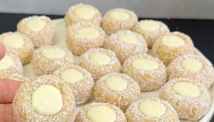 Započnite miješanjem kolačića, oblatni i kokosa. Zatim umiješajte kondenzirano mlijeko i mascarpone sir. U sredini napravite malo udubljenje i oblikujte kolačiće. Prekrijte kolačiće nasjeckanim kokosom i u sendviču ih prelijte bijelom čokoladom.