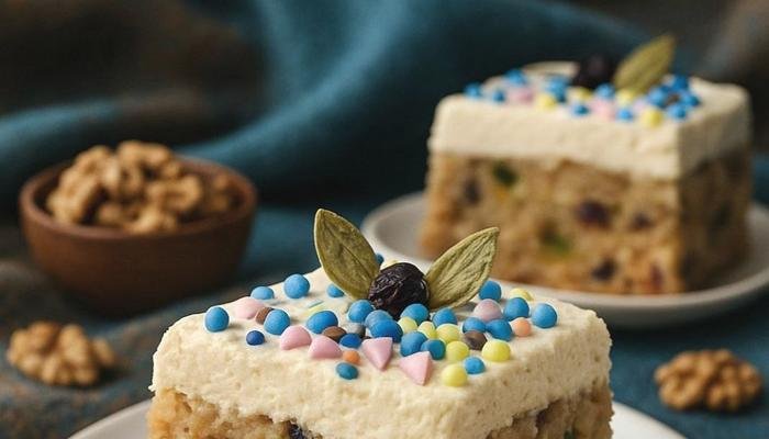 Na kraju dodajte orahe, žele bombone i brusnice. Smesu rasporedite u kalup pa vratite u frižider. Dekorišite sa umućenim šlagom i ukrasima po želji. Ovako sklopljena torta bi trebalo da odstoji u frižider par sati da se stegne.