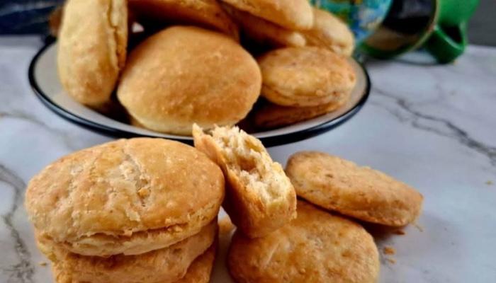 Druga tri kvadrata takođe tako preklopite i dobijate veliku kocku koju ćete pokriti prozirnom folijom i ostaviti da odmara 15 minuta. Postupak ponovite još jednom, onda nakon 15 minuta razvite testo i oštrim okruglim sekačem vadite krugove i ređajte u pleh sa masnim papirom da odstoje još 20 minuta.