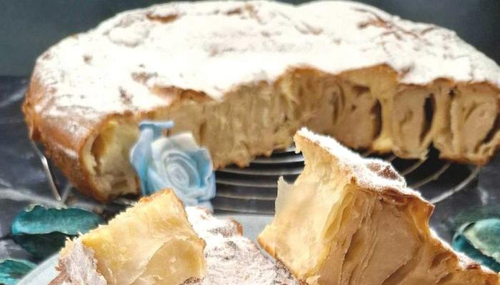 Okruglu tepsiju prečnika 24 cm pomažite uljem i počnite sa savijanjem i premazivanjem kora. Prve dve kore poprskajte kremom pa na ivice stavite deo kreme oko 3 do 4 kašike te pažljivo uvite u rolat i stavite dal na ivicu tepsije ili na sredinu uvijenu kao puž pa oko nje ostale kore tako uvijene. Redjajte dok ne potrošite i kore i kremu i nadev. Za kraj ostavite kremu malo pa njome polite celu uvijenu pitu i stavite da se peče na 180 C oko 35 min. Toplu pitu prekrijte krpom da omekša i premazite uljem. Prijatno.