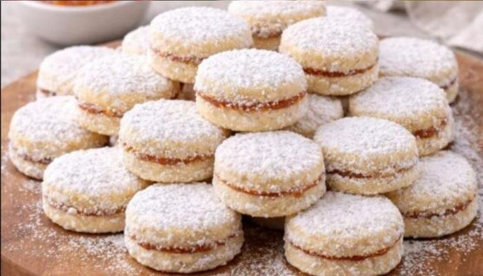 Postepeno dodajte brašno i zamesite meko testo. Testo razvući oklagijom na pobrašnjenoj podlozi (ne previše tanko). Vadite krugove i ređajte ih na pleh obložen papirom za pečenje. Pecite na 160°C oko 15 minuta – vanilice treba da ostanu svetle. Ohladite, pa filujte džemom od kajsije. Na kraju uvaljajte u šećer u prahu.