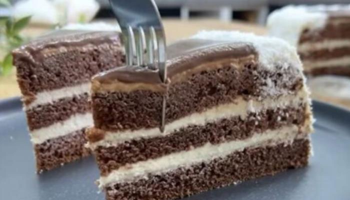 Ispecite kakao biskvit, skuvajte kremasti vanila fil, poprskajte kore čokoladnim mlekom, premažite filom, obucite tortu u kokos i prelijte čokoladnom glazurom.