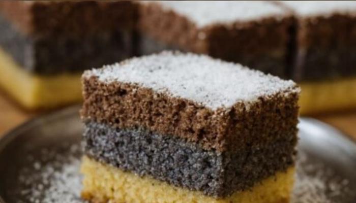 Trobojne mak kocke su kolač koji spaja jednostavnu pripremu i prelep vizuelni efekat. Slojevi žutog i tamnog biskvita, uz bogat krem od maka, stvaraju desert koji je mekan, sočan i pun domaćeg ukusa — idealan za porodična okupljanja, praznike ili kada želite nešto slatko što uspeva svaki put. Kolač se peče u dva koraka, što omogućava da se mak savršeno sjedini sa biskvitom i ostane kompaktan pri rezanju.